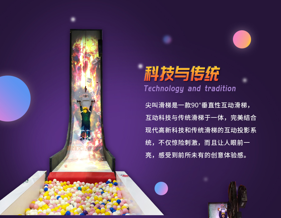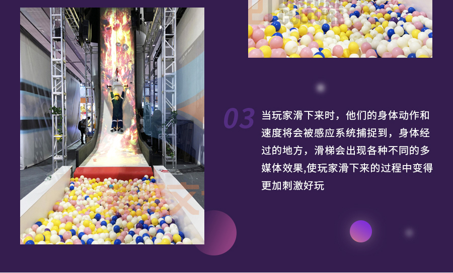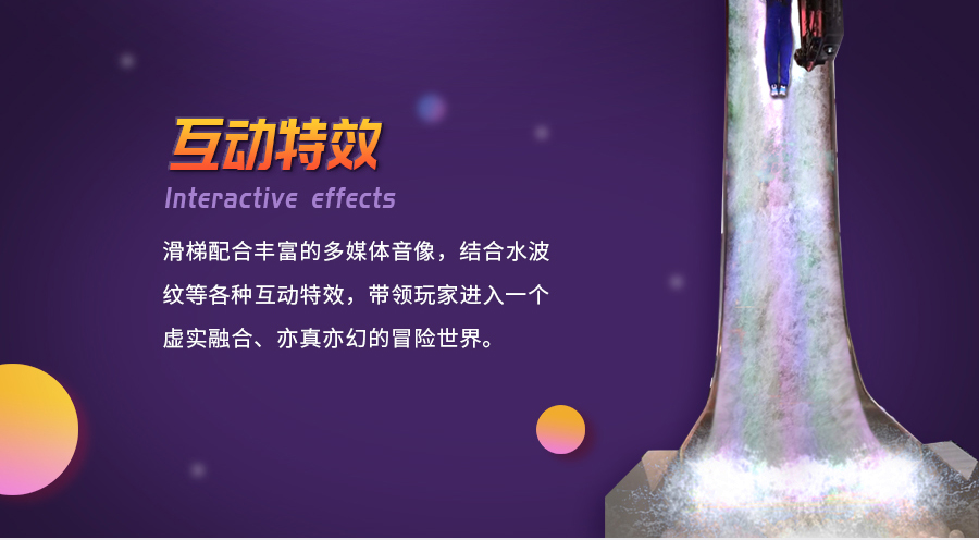 尖叫滑梯是一款90°垂直性互動(dòng)滑梯,是互動(dòng)科技與傳統(tǒng)滑梯于一體,完美結(jié)合現(xiàn)代高新科技和傳統(tǒng)滑梯的互動(dòng)投影系統(tǒng),不僅驚險(xiǎn)刺激,而且讓人眼前一亮,感受到前所未有的創(chuàng)意體驗(yàn)感?;菖浜县S富的多媒體音像,結(jié)合水波紋等各種互動(dòng)特效,帶領(lǐng)玩家進(jìn)入一個(gè)虛實(shí)融合、亦真亦幻的冒險(xiǎn)世界。