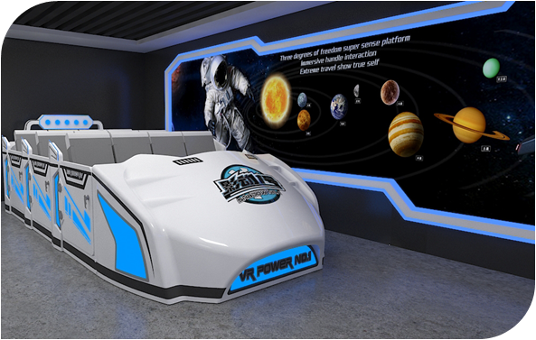 產(chǎn)品搭載VR高清頭顯、內(nèi)容控制系統(tǒng)、六自由度技術(shù)等科技,其外觀模仿來自外太空的方舟,玩家戴上VR高清頭顯,置身特制飛船當(dāng)中,就可以體驗多部高清震撼的太空題材影片,高清畫面,代入感強(qiáng),動感強(qiáng)烈,體感真實。同時搭載12人體驗,增加客流容納,解決體驗排隊問題,12人一起互動,激發(fā)客戶體驗消費,你值得擁有的賺錢神器。