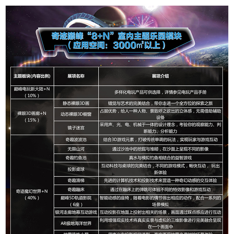 四大主題地形:草原、冰川、平原、森林,任意搭配淘氣堡造型,讓科技與現(xiàn)實渾然一體;30多款游戲節(jié)目隨意切換,且更多游戲持續(xù)開發(fā)中。。。。。。